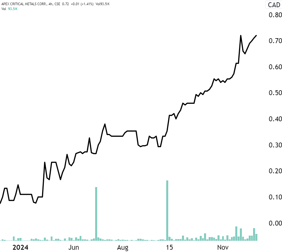 Disclosure of Interest and Advisory Cautions: Nothing in this report should be construed as a solicitation to buy or sell any securities mentioned. Rockstone, its owners and the author of this report are not registered broker-dealers or financial advisors. Before investing in any securities, you should consult with your financial advisor and a registered broker-dealer. Never make an investment based solely on what you read in an online or printed report, including Rockstone’s report, especially if the investment involves a small, thinly-traded company that isn’t well known. The author of this report, Stephan Bogner, is paid by Zimtu Capital Corp. (“Zimtu”), a TSX Venture Exchange listed investment company. Part of the author’s responsibilities at Zimtu is to research and report on companies in which Zimtu has an investment. So while the author of this report is not paid directly by Apex Critical Metals Corp. (“Apex“), the author’s employer Zimtu Capital Corp. will benefit from volume and appreciation of Apex’s stock prices. The author currently does not own any equity of Apex Critical Metals Corp., but he holds an equity position in Zimtu Capital Corp. and thus will also benefit from volume and price appreciation of this stock. Apex Critical Metals Corp. pays Zimtu Capital Corp. to provide this report and other services. As per news-release on June 6, 2024: “Zimtu Capital Corp. (TSX.V: ZC; FSE: ZCT1) (the “Company” or “Zimtu”) announces it has signed an agreement with Apex Critical Metals (CSE: APXC) (OTCQB:APXCF) to provide its ZimtuADVANTAGE program (https://www.zimtu.com/zimtu-advantage/). Zimtu will receive $150,000 from the company for the duration of the one-year contract. ZimtuADVANTAGE is a comprehensive marketing initiative designed to assist companies in navigating capital markets through strategic marketing efforts. It includes services such as in-depth research reports, content creation, investor lead generation, targeted awareness advertising, video news releases, social media management & newsletters. This program aims to enhance a company’s visibility and engagement with high-value investors, leveraging various digital platforms and media outlets for effective dissemination of company updates and information… Zimtu Capital Corp. is a public investment issuer that aspires to achieve long-term capital appreciation for its shareholders. Zimtu Capital companies may operate in the fields of mineral exploration, mining, technology, life sciences or investment. The Company trades on the TSX Venture Exchange under the symbol “ZC” and Frankfurt under symbol “ZCT1”. For more information visit: www.zimtu.com.” Overall, multiple conflicts of interests exist. Therefore, the information provided in this report should not be construed as a financial analysis or recommendation but as an advertisement. Rockstone’s and the author’s views and opinions regarding the companies that are featured in the reports are the author‘s own views and are based on information that was received or found in the public domain, which is assumed to be reliable. Rockstone and the author have not undertaken independent due diligence of the information received or found in the public domain. Rockstone and the author of this report do not guarantee the accuracy, completeness, or usefulness of any content of this report, nor its fitness for any particular purpose. Lastly, Rockstone and the author do not guarantee that any of the companies mentioned in the report will perform as expected, and any comparisons that were made to other companies may not be valid or come into effect. Please read the entire Disclaimer carefully. If you do not agree to all of the Disclaimer, do not access this website or any of its pages including this report in form of a PDF. By using this website and/or report, and whether or not you actually read the Disclaimer, you are deemed to have accepted it. Information provided is educational and general in nature. Data, tables, figures and pictures, if not labeled or hyperlinked otherwise, have been obtained from Apex, Tradingview, Stockwatch, and the public domain.