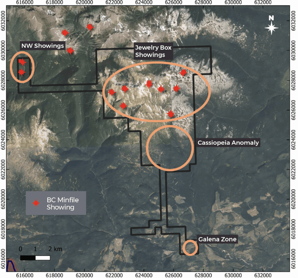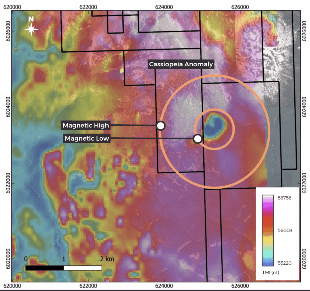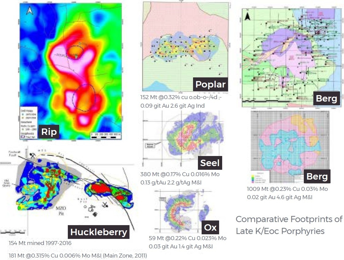 - Big Dipper Anomaly: A 3.2 x 2.2 km magnetic high, interpreted as a preserved deeper porphyry system. No drilling yet.