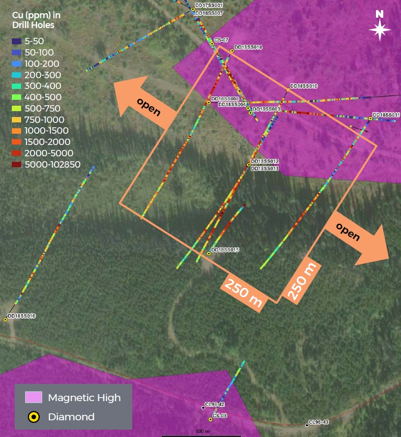 The combination of 1) already-confirmed thick copper intercepts, 2) a district-scale magnetic footprint, and 3) a lack of systematic drilling in the past, means Stars has the profile of a company-making discovery.