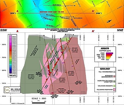 - 207 m @ 0.205% copper (DD18-015, from 164 m), including 67 m @ 0.35% copper (from 231 m) and 9.9 m @ 0.45% copper (from 444.4 m to end of hole)