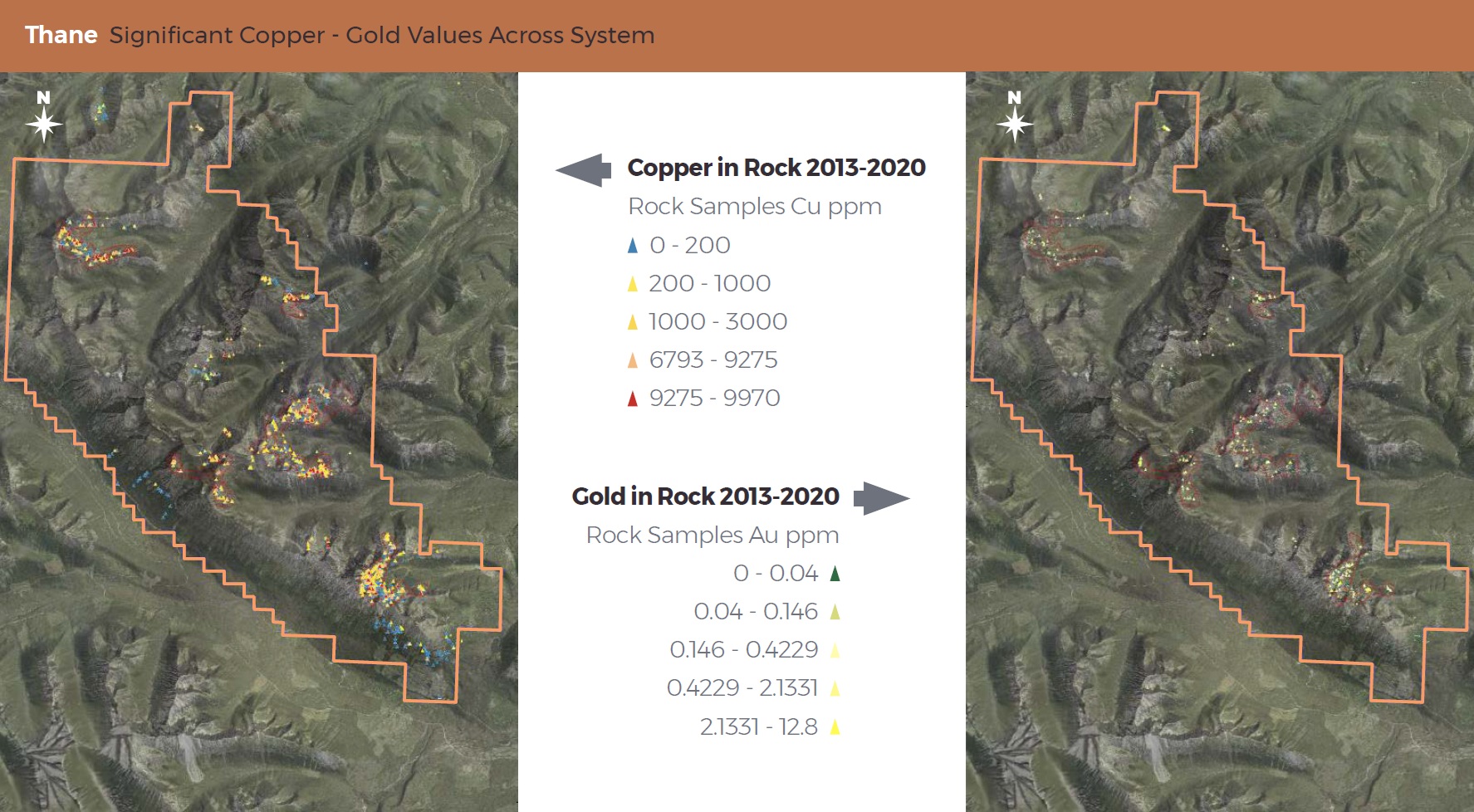The Thane Property is underpinned by extensive district-scale anomalies, widespread alteration, and numerous mineralized showings that together define a truly large exploration footprint. Historical work has delivered exceptionally high-grade rock results across multiple zones, while the fact that almost no systematic or modern drilling has ever been carried out leaves the majority of the project’s discovery potential intact and wide open. Taken together, these factors make Thane a valuable long-term asset that provides Copper Quest with considerable optionality, either through future joint-venture partnerships, staged systematic drill campaigns, or as part of a potential consolidation scenario in a proven porphyry corridor that already hosts several producing and past-producing mines.