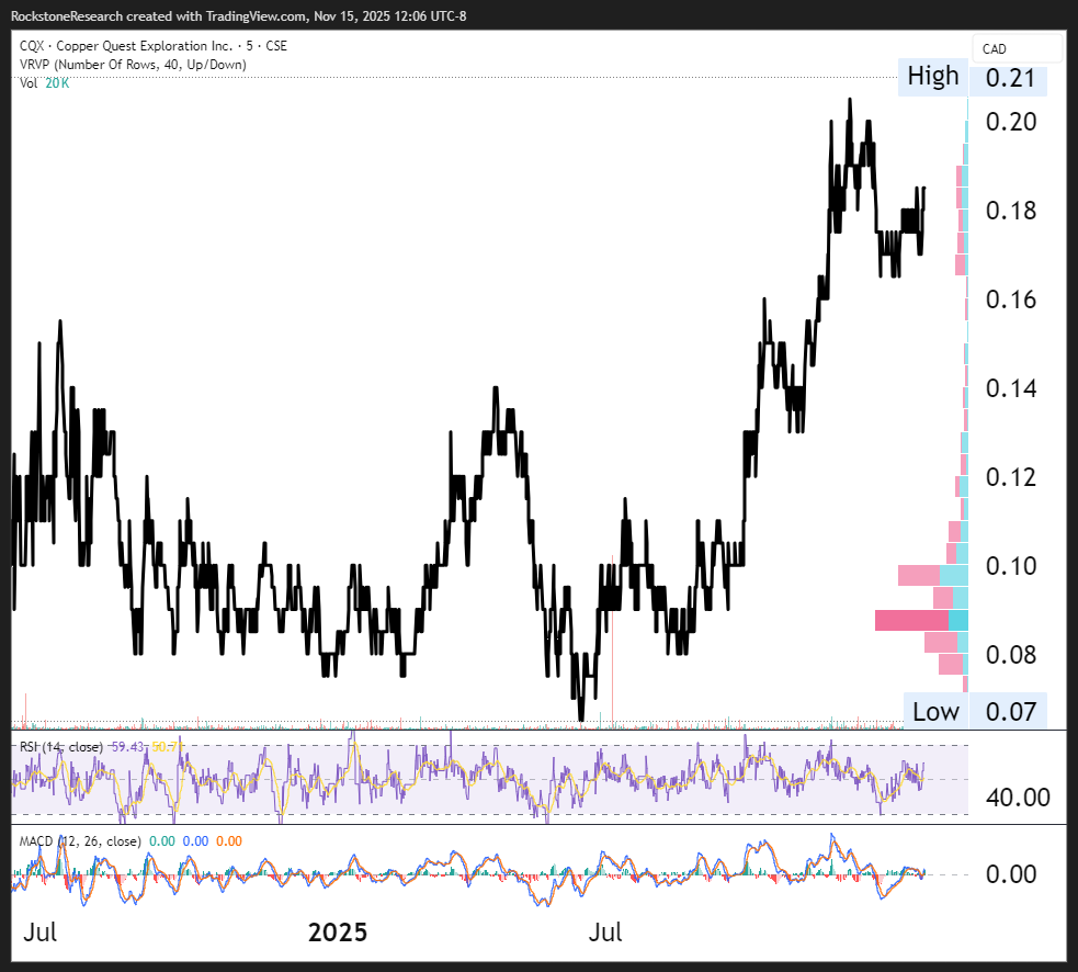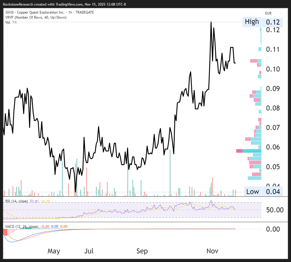 Disclosure of Interest and Advisory CautionsNothing in this report should be construed as a solicitation to buy or sell any securities mentioned. Rockstone, its owners and the author of this report are not registered broker-dealers or financial advisors. Before investing in any securities, you should consult with your financial advisor and a registered broker-dealer. Never make an investment based solely on what you read in an online or printed report, including Rockstone’s report, especially if the investment involves a small, thinly-traded company that isn’t well known. The author of this report, Stephan Bogner, is paid by Zimtu Capital Corp. (“Zimtu”), a TSX Venture Exchange listed investment company. Part of the author’s responsibilities at Zimtu is to research and report on companies in which Zimtu has an investment. So while the author of this report is not paid directly by Copper Quest Exploration Inc. (“Copper Quest“), the author’s employer Zimtu Capital Corp. will benefit from volume and appreciation of Copper Quests stock prices. Copper Quest pays Zimtu Capital Corp. to provide this report and other services. As per news on August 27, 2025: “Copper Quest Exploration Inc. (CSE: CQX; OTCQB: IMIMF; FRA: 3MX) (“Copper Quest” or the “Company”) is pleased to announce that it has signed an agreement with Zimtu Capital Corp. (TSX.V: ZC) (FSE: ZCT1) (“Zimtu”) whereby Zimtu will provide marketing services under its ZimtuADVANTAGE program (https://www.zimtu.com/zimtu-advantage/), effective September 1, 2025 for an initial term of 12 months at a cost of $12,500 per month. Marketing Agreement: The ZimtuADVANTAGE program is designed to provide opportunities, guidance, marketing and assistance. Services include investor presentations, email marketing, lead generation campaigns, blog posts, digital campaigns, social media management, Rockstone Research reports & distribution, video news releases and related marketing & awareness activities. Zimtu is based in Vancouver, at Suite 1450 – 789 West Pender Street, Vancouver, BC V6C 1H2. Zimtu may be reached at 604.681.1568, or info@zimtu.com. Zimtu’s compensation does not include securities of the Company; as of the date hereof, Zimtu owns 2,633,333 shares of the Company and 2,333,333 warrants to acquire common shares of the Company.“ The author owns equity of Copper Quest and thus will profit from volume and price appreciation of the stock. This also represents a significant conflict of interest that may affect the objectivity of this reporting. The author may buy or sell securities of Copper Quest (or comparable companies) at any time without notice, which may give rise to additional conflicts of interest. Overall, multiple conflicts of interests exist. Therefore, the information provided in this report should not be construed as a financial analysis or recommendation but as an advertisement. This report should be understood as a promotional publication and does not replace individual investment advice. Rockstone’s and the author’s views and opinions regarding the companies that are featured in the reports are the author‘s own views and are based on information that was received or found in the public domain, which is assumed to be reliable. Rockstone and the author have not undertaken independent due diligence of the information received or found in the public domain. Rockstone and the author of this report do not guarantee the accuracy, completeness, or usefulness of any content of this report, nor its fitness for any particular purpose. Lastly, Rockstone and the author do not guarantee that any of the companies mentioned in the report will perform as expected, and any comparisons that were made to other companies may not be valid or come into effect. Please read the entire disclaimer carefully. If you do not agree to all of the Disclaimer, do not access this website or any of its pages including this report in form of a PDF. By using this website and/or report, and whether or not you actually read the Disclaimer, you are deemed to have accepted it. Information provided is educational and general in nature. Data, tables, figures and pictures, if not labeled or hyperlinked otherwise, have been obtained from Copper Quest Exploration Inc., Tradingview, Stockwatch, and the public domain. The cover picture on page 1 has been obtained and licenced from 123rf.com.