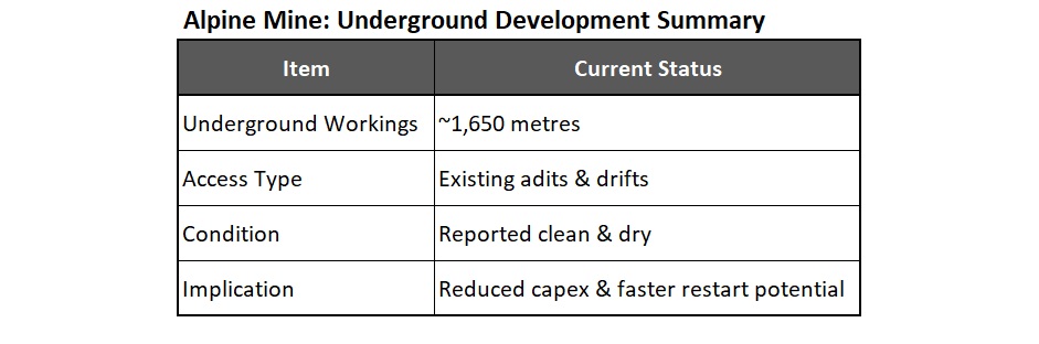 Alpine is a past-producing underground mine with: