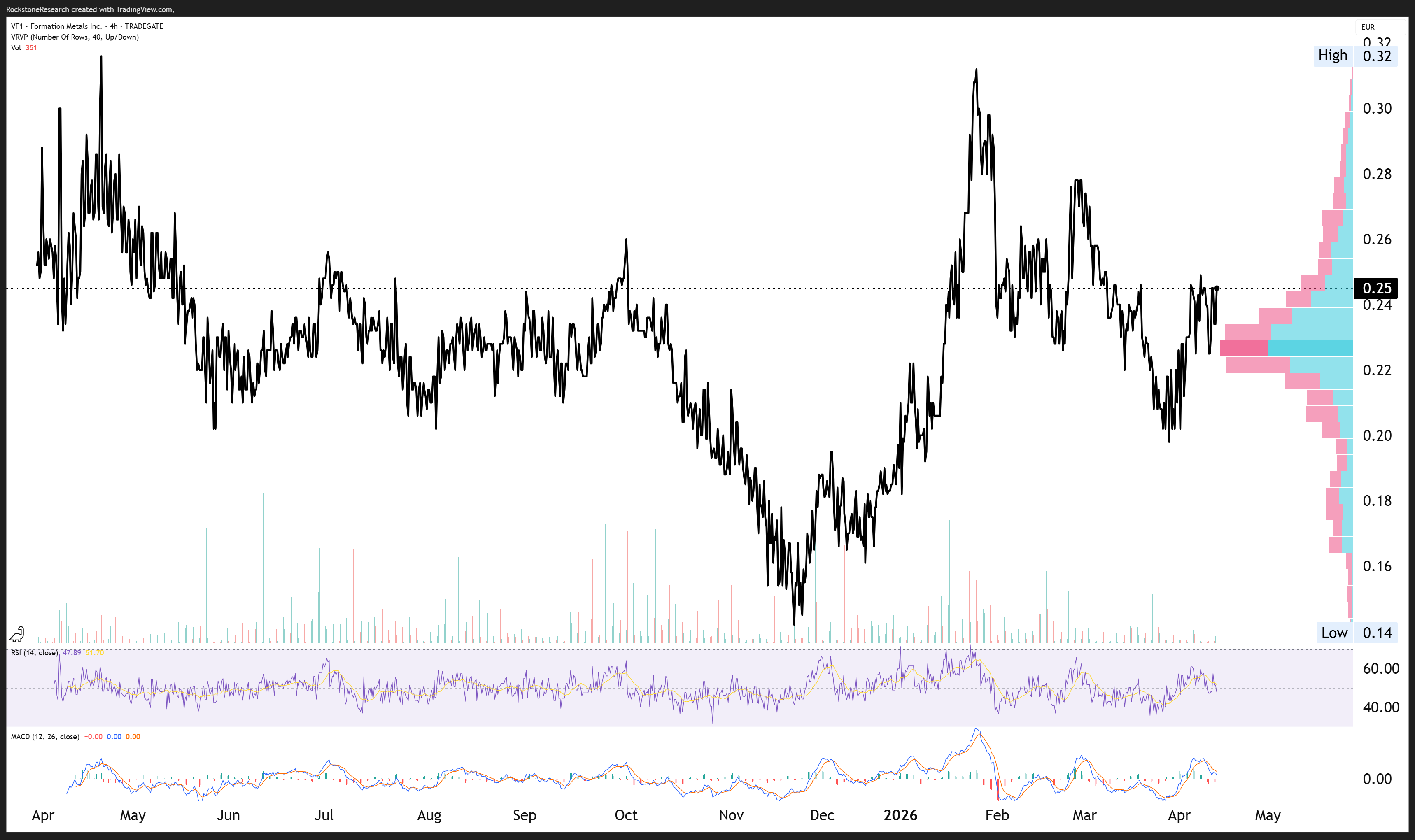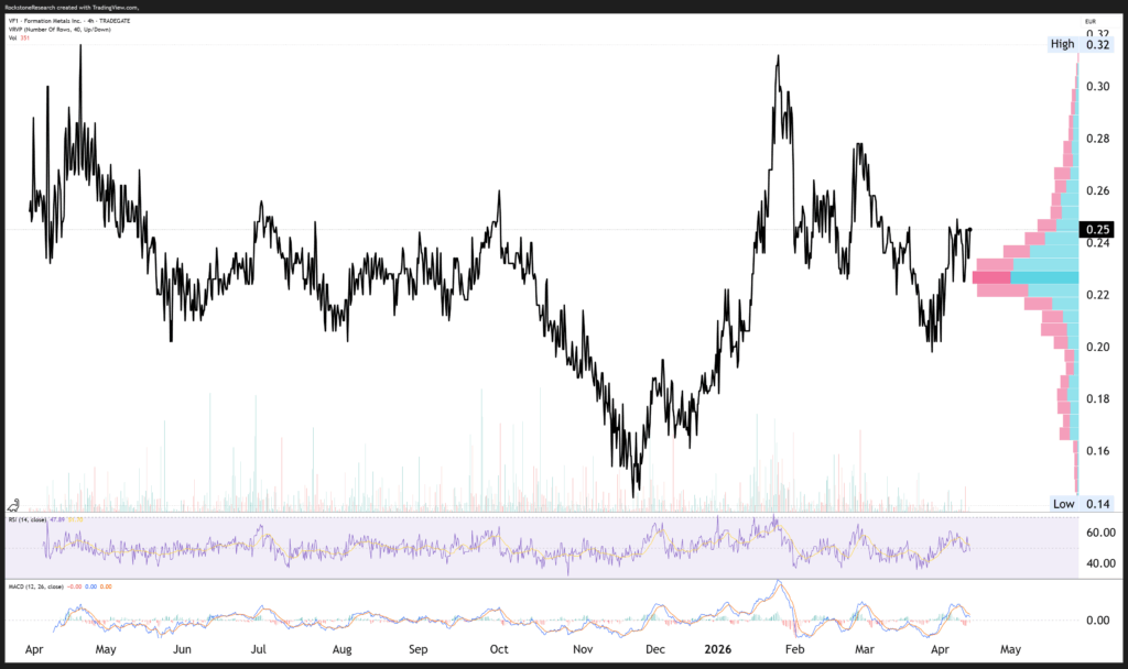Disclosure of Interest and Advisory Cautions: Nothing in this report should be construed as a solicitation to buy or sell any securities mentioned. Rockstone, its owners and the author of this report are not registered broker-dealers or financial advisors. Before investing in any securities, you should consult with your financial advisor and a registered broker-dealer. Never make an investment based solely on what you read in an online or printed report, including Rockstone’s report, especially if the investment involves a small, thinly-traded company that isn’t well known. The author of this report, Stephan Bogner, is paid by Zimtu Capital Corp. (“Zimtu”), a TSX Venture Exchange listed investment company. Part of the author’s responsibilities at Zimtu is to research and report on companies in which Zimtu has an investment. So while the author of this report is not paid directly by Formation Metals Inc. (“FOMO“), the author’s employer Zimtu Capital Corp. will benefit from volume and appreciation of FOMO‘s stock prices. The author also owns equity of FOMO, and he also owns equity of Zimtu Capital Corp. and thus will benefit from volume and price appreciation of these stocks. FOMO pays Zimtu Capital Corp. to provide this report and other services. FOMO has signed an agreement with Zimtu Capital Corp. (TSX.V: ZC) (FSE: ZCT1) (“Zimtu”) whereby Zimtu will provide marketing services under its ZimtuADVANTAGE program, effective August 1, 2025, for an initial term of 12 months at a cost of $12,500 per month. The program is designed to provide opportunities, guidance, marketing and assistance. Services include investor presentations, email marketing, lead generation campaigns, blog posts, digital campaigns, social media management, Rockstone reports & distribution, video news releases and related marketing & awareness activities. Zimtu is based in Vancouver, at Suite 1450 – 789 West Pender Street, Vancouver, BC V6C 1H2. Zimtu may be reached at 604.681.1568, or info@zimtu.com. Overall, multiple conflicts of interests exist. Therefore, the information provided in this report should not be construed as a financial analysis or recommendation but as an advertisement. Rockstone’s and the author’s views and opinions regarding the companies that are featured in the reports are the author‘s own views and are based on information that was received or found in the public domain, which is assumed to be reliable. Rockstone and the author have not undertaken independent due diligence of the information received or found in the public domain. Rockstone and the author of this report do not guarantee the accuracy, completeness, or usefulness of any content of this report, nor its fitness for any particular purpose. Lastly, Rockstone and the author do not guarantee that any of the companies mentioned in the report will perform as expected, and any comparisons that were made to other companies may not be valid or come into effect. Please read the entire disclaimer carefully. If you do not agree to all of the Disclaimer, do not access this website or any of its pages including this report in form of a PDF. By using this website and/or report, and whether or not you actually read the Disclaimer, you are deemed to have accepted it. Information provided is educational and general in nature. Data, tables, figures and pictures, if not labeled or hyperlinked otherwise, have been obtained from Formation Metals Inc., Tradingview, Stockwatch, and the public domain.