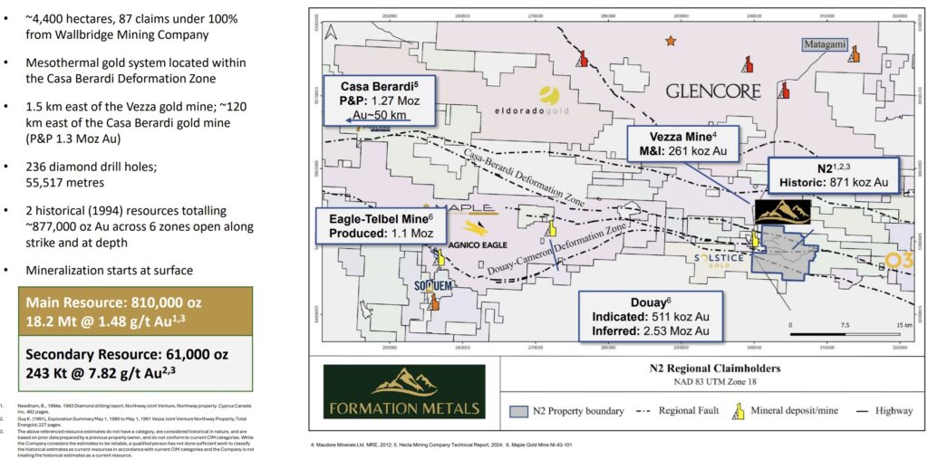 Against this backdrop, Formation Metals Inc. (CSE: FOMO) is advancing its flagship N2 Gold Project in Quebec’s Abitibi Greenstone Belt toward a maiden NI 43-101 compliant mineral resource estimate, which the company expects to complete in Q3 2026. This milestone historically marks the point at which advanced gold projects begin to attract broader strategic and corporate development interest.