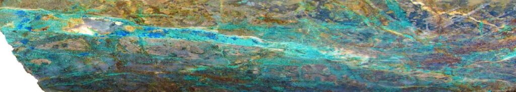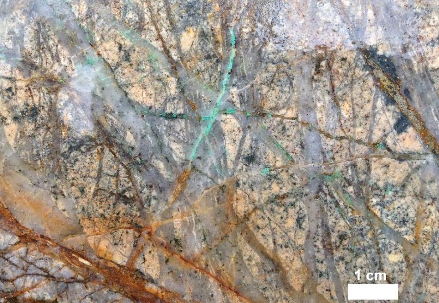 - The Star Property exhibits classic porphyry-style mineralization in both supergene and hypogene settings. The supergene zone locally extends to depths of 80-100 m and is characterized by disseminated azurite and malachite, with fractures commonly coated in tenorite. At the Star Target, hypogene mineralization is defined by vein-hosted and disseminated sulfides, including chalcopyrite, pyrite, bornite, and molybdenite. Among these, chalcopyrite is the most abundant copper-bearing sulfide identified on the property.