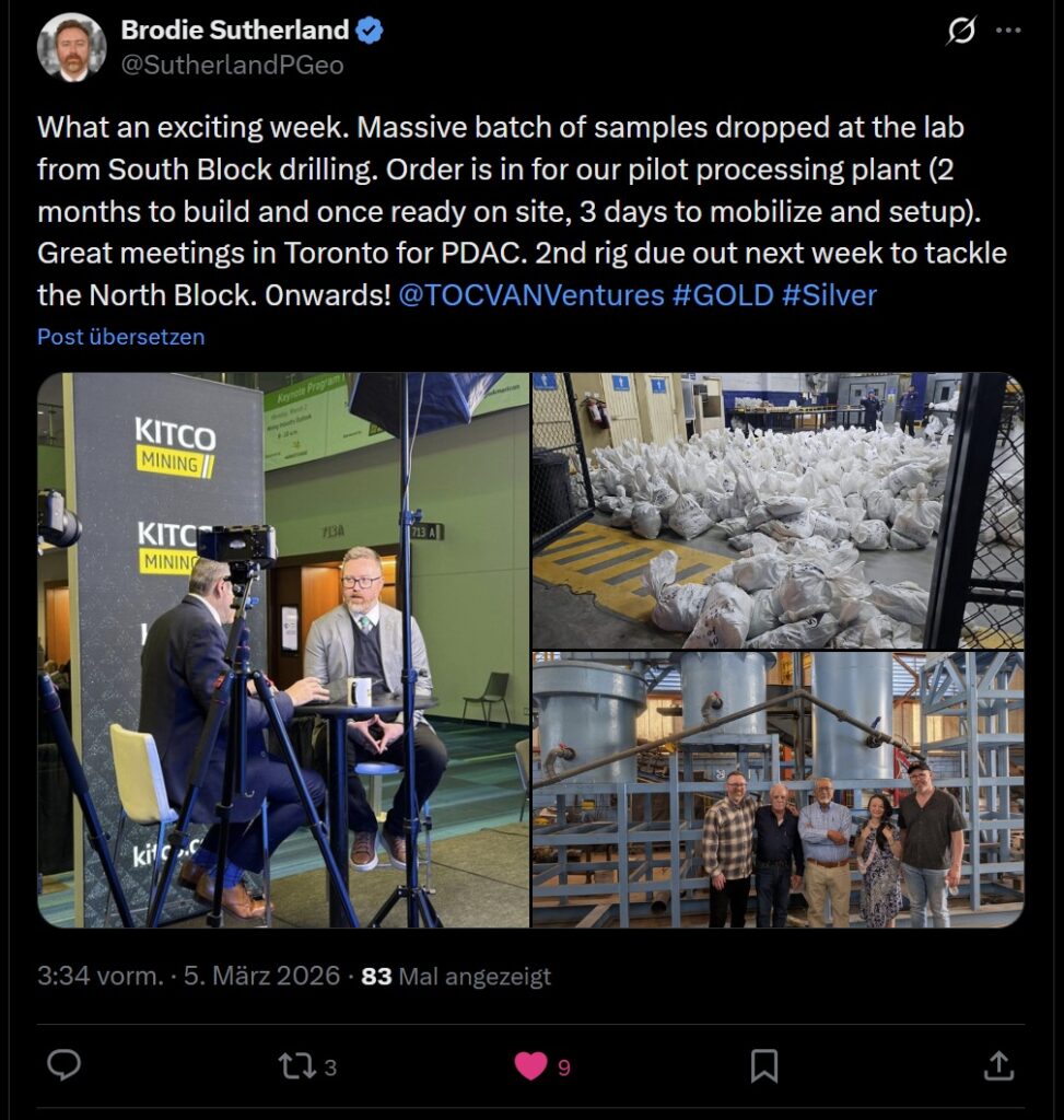 In Tocvan’s case, the update reads more like focused work on the next steps: Brodie referenced very good meetings on site, including with Stifel. In an environment where institutional attention is starting to rotate back into the precious metals space, those conversations are not just a formality, they are part of the broader strategy.
